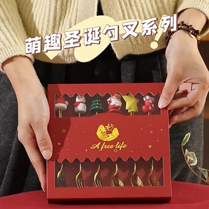 Set de furculițe și linguri de Crăciun, 2/4/6 buc. Set de cadou, din oțel inoxidabil, veselă creativă, cafea, ceai, desert, furculițe și linguri