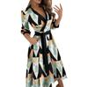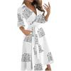 *Caracteristici: Mânecă lungă, imprimeu Camo cu litere în carouri florale, guler cu rever, nasturi în jos, deschidere în față, fantă laterală, leagăn, lungime la podea.