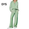 Hanoracul are manșete cu coaste, decolteu în V, umeri căzuți și buzunare, în timp ce pantalonii oferă o potrivire lejeră și un stil supradimensionat pentru un aspect la modă și șic..