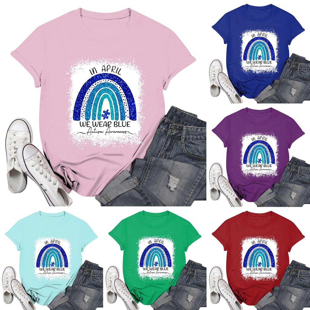 Tricou casual imprimat de damă, cu gât rotund, cu mânecă scurtă