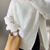 Lazy Style High Neck Zipper Solid Color High-end Knitted Sweater for Outerwear, Loose Long Sleeved Warm Top for Outerwear