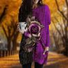 New In Autumn Metal Rose Print Plus Size Dress Women O'neck Long Sleeves Casual Pocket Dresses