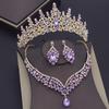 Seturi de Bijuterii de Nuntă cu Cristale Roz Superbe pentru Femei Coroană de Nuntă Cercei Tiare Set Colier Mireasă Bal Dubai Seturi de Bijuterii