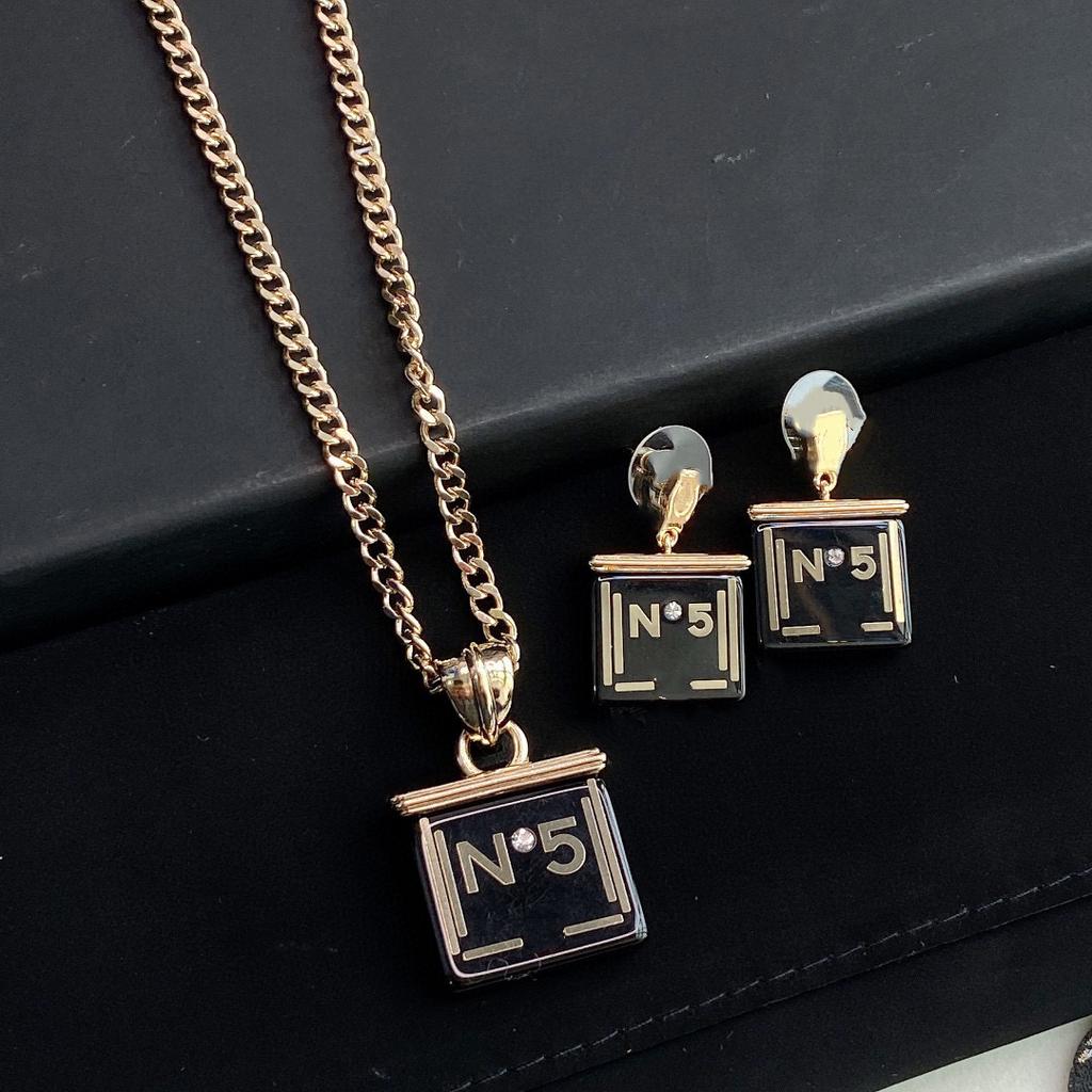 Set Bijuterii de Modă de Marcă Pentru Femei Lanț Gros Petrecere Sticluță de Parfum Choker Cercei Rășină Literă Unică 5 Lanț de Cupru