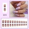 24 buc. Apăsați pe unghii, de lungime medie, pătrată europeană, în relief, degradat, mov, franceză, uzură, unghii, flori drăguțe, cu puncte simple, tablete pentru arta unghiilor, unghii false