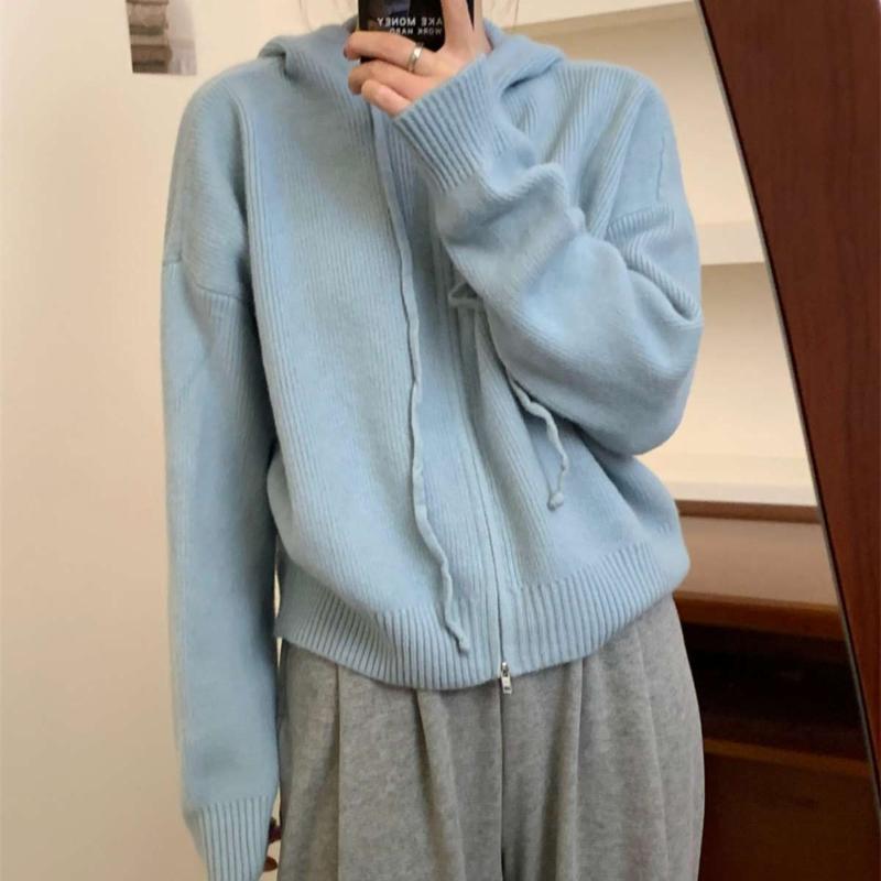 Toamnă și iarnă, în stil coreean, cu fermoar, pulover cu glugă, cardigan, jachetă, top tricotat la modă pentru femei