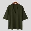 INCERUN Bărbați Deep V Jumătate cu mânecă lungă tricotată Casual Top cu coaste