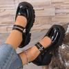 Pantofi de damă la modă Mary Jane din piele lăcuită neagră cu cataramă la gleznă, cu toc gros, pantofi cu toc înalt, toamnă 2024, pantofi loafer cu platformă groasă pentru femei