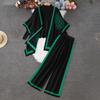 Toamnă Iarnă Pulover tricotat Pantaloni cu imprimeu Set 3 piese femei șaluri pelerina și pulovere cu mânecă lungă Pantaloni cu picioare largi Trening
