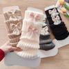 1 pereche de încălzitoare de picioare calde de toamnă pentru copii, fete, șic, dulce, fundă de balet, șosete din fire tricotate, la modă de iarnă