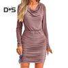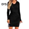 Rochie scurtă pentru femei Gât grămadă mâneci lungi plisate culoare pură teacă slim fit OL petrecere de navetă mini rochie de bal Evenimente de seară