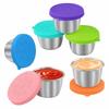 Recipient pentru pansament de 6 buc, recipiente mici pentru condimente din oțel inoxidabil cu capace din silicon rezistente la scurgeri, recipiente reutilizabile pentru cutii de prânz, picnicuri