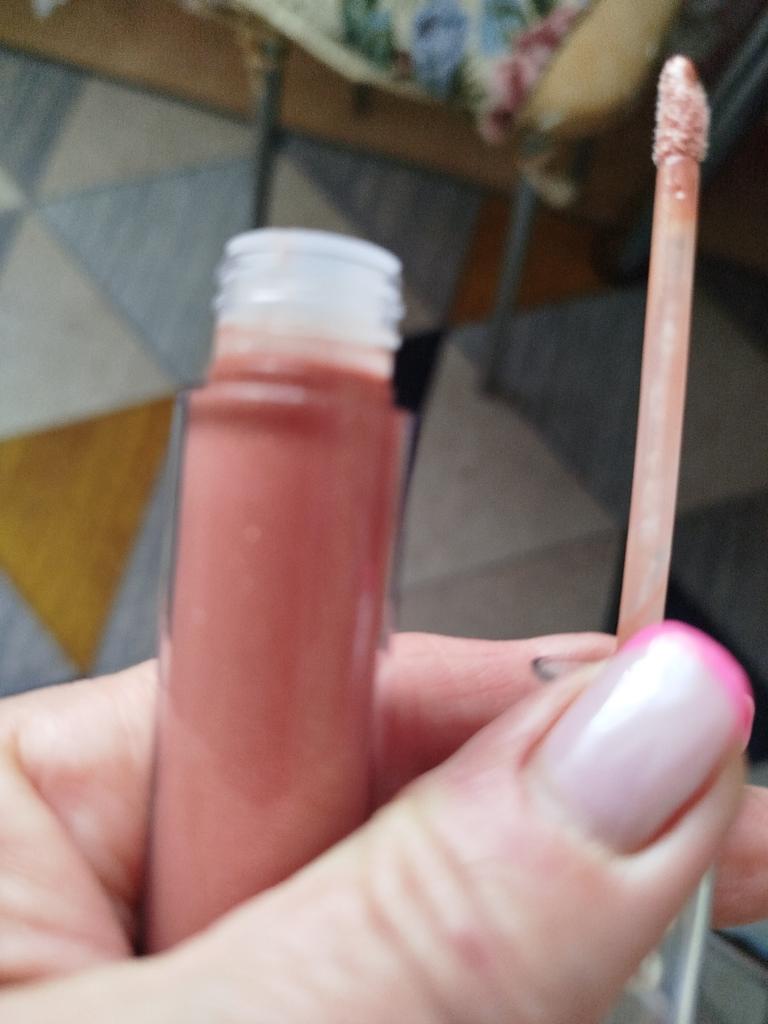 Luciu bun, ușor cu sclipici, se aplică bine, nu usucă buzele.