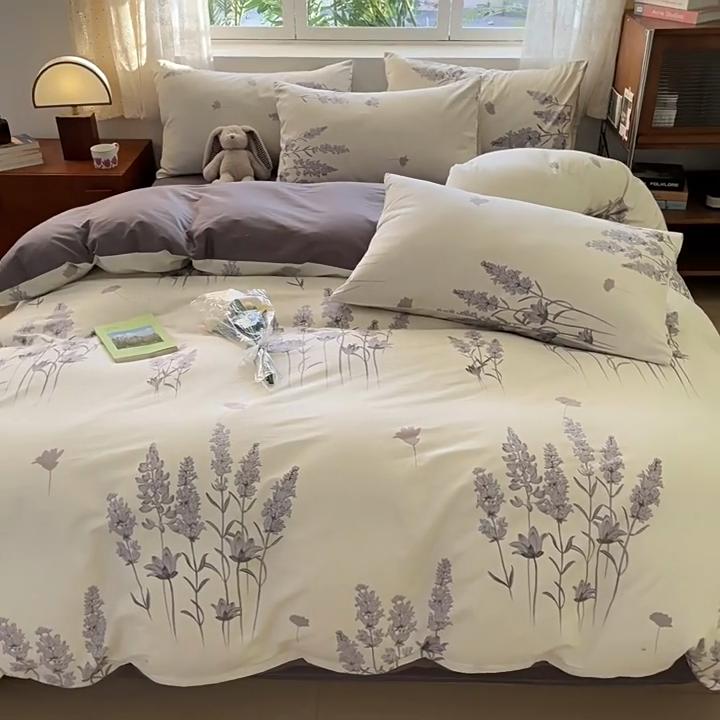 Set din patru piese din bumbac, pat din bumbac pur, husă de pilota, cearșaf de pat, set din trei piese pentru dormitor, lenjerie de pat