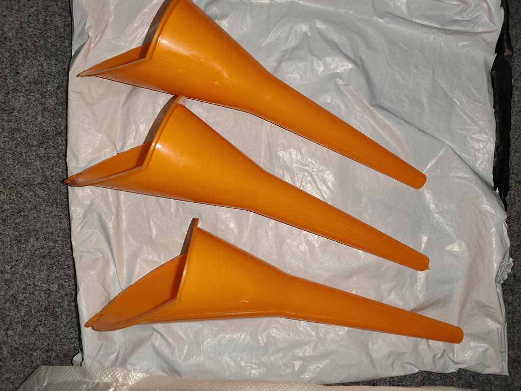 Rețineți că aceste pâlnii sunt imense 😳 Credeam că sunt mici. Dar cel puțin este convenabil să torni totul, dar le poți depozita doar acasă sau în garaj, eu nu am găsit loc 😃