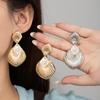Cercei cu perle încrustate din oțel inoxidabil, ușoare, de lux, pentru femei, cercei versatili, placați, de 18K.