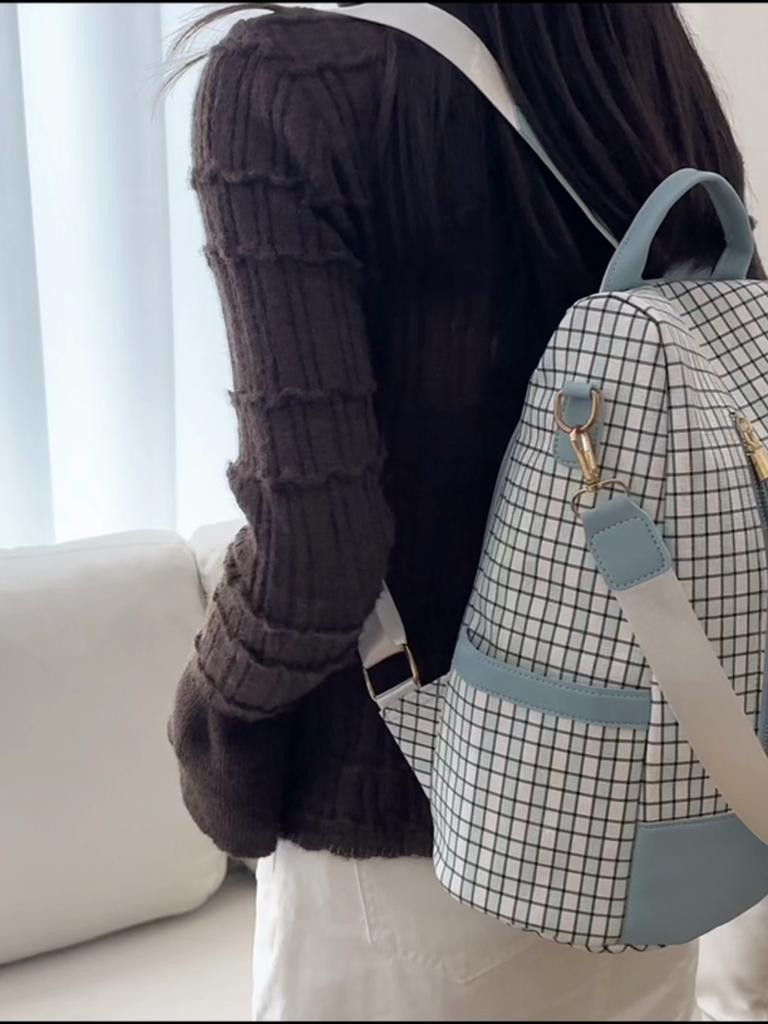 Rucsac antifurt pentru femei Geantă de umăr multifuncțională în carouri Rucsac de călătorie cu trei scopuri