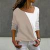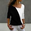 Tricou cu mânecă lungă, cu imprimeu de îmbinare, cu gât înclinat, la modă pentru femei