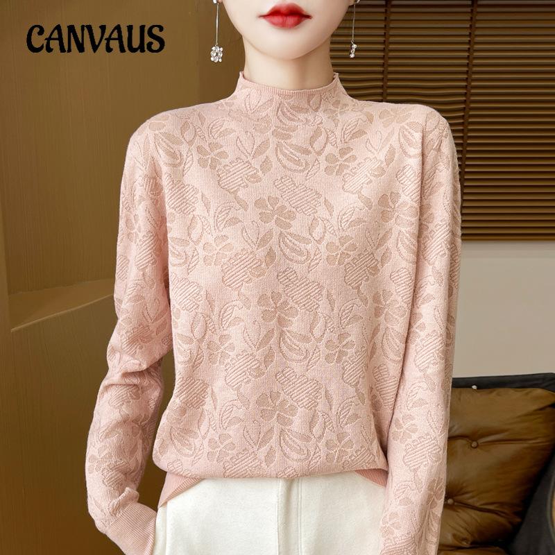 Cămașă de toamnă pentru femei, tricotată cu jumătate de gât înalt, cu fundul jacquard
