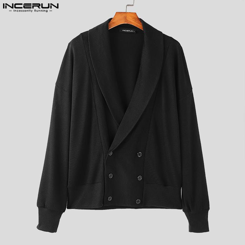 INCERUN Bărbați Rever Gât în V Față Încrucișată Nasturi Mânecă Lungă Tricotat Casual Larg Pulovere Cardigane