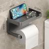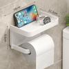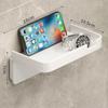 Suport pentru hârtie igienică, adeziv, fără găurire, montat pe perete, cu raft de depozitare