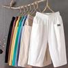 Pantaloni harem de vară casual din bumbac și in, pantaloni scurți pentru femei, largi, cu talie înaltă, elastici la gleznă, culoare uni, cu buzunare