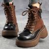 Cizme cu platformă cu toc înalt din piele naturală 2024 iarnă cu talpă groasă culori mixte vârf rotund femei cizme scurte de pluș