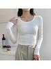 Hot Girl Style Pure Desire Long-sleeved T-shirt Women's U-neck Sexy Short Style Inner Tight Spring and Summer New Bottoming Top Trendy