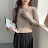 Bluză tricotată cu gât pe jumătate înalt pentru femei Toamna și Iarna Stil filetat Stil nou Elastic Moale Ceros Prietenos cu pielea Interior periat Top