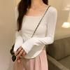 Tricou cu gât pătrat și mâneci lungi pentru femei, nou toamna, slim fit, hot girl, de bază, versatil, cu fir.