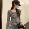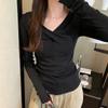 European Small Shirt Pink Cross V-neck T-shirt Women's Autumn and Winter New Versatile Chic Slim Long-sleeved Bottoming Top