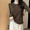 Design de culoare contrastantă Tricou fals din două piese cu mâneci lungi pentru femei Toamnă și iarnă Nou cămașă subțire din cașmir cu fund cald