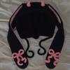 New handmade crocheted solid color lace horn hat for adults funny fashion lace pullover hat
