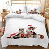 Husă de Plapumă Pisică Pisici și Câini Se Joacă Crăciun Animal Animal de Companie Set de Lenjerie de Pat pentru Copii Adolescenți Mărime Dublă Queen King Poliester Husă de Plapumă