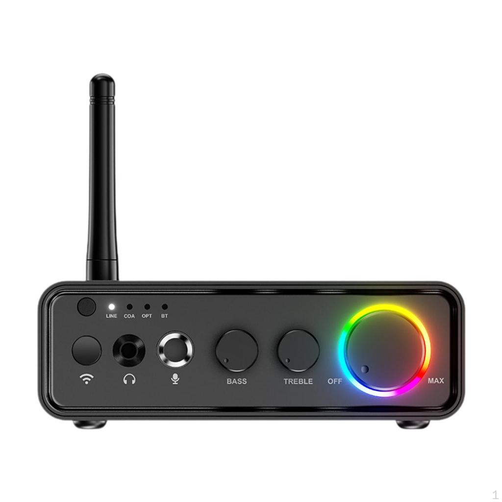 - 【Lumină RGB multicoloră】: Amplificatorul audio de casă este echipat cu o lumină circulară RGB multicoloră frontală, oferind efecte vizuale cool și adăugând distracție la utilizare.. De asemenea, este echipat cu o telecomandă și suportă diverse operațiuni funcționale