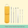 Linguriță pentru cules urechi Husă din piele 6 bucăți Șurub de fixare Curățător de urechi Linguriță pentru cules urechi Instrument de cules urechi din 6 piese