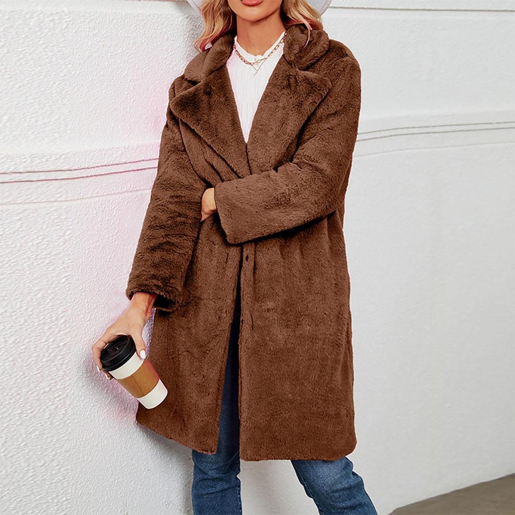 Jachetă de damă, de toamnă și iarnă, cu rever, de culoare uni, jachetă lungă de pluș