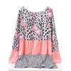 New women's clothing long-sleeved printed leopard print splicing long-sleeved V-neck casual T-shirt women
