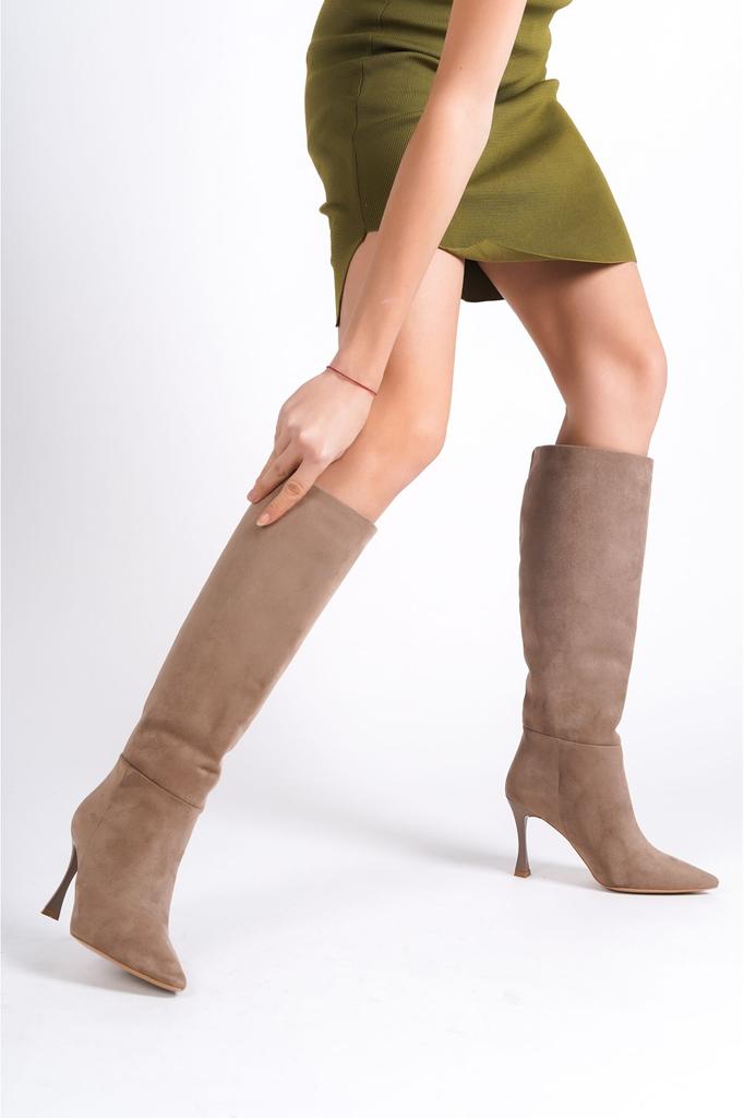 Women Modern Stylish Fashion Boots Boots Faux Leather Suede Vz Suede Thin Cm Heels Pointed Toe Mink Long Boots
