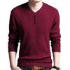 Autumn Winter Solid Color Clothing Men Sweater Chic Men Solid Color V Neck Long Sleeve Pullover Slim-Fit Knitted Sweater Blouse