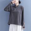 Catifea germană pe două fețe, broderie de toamnă și iarnă, cu guler în picioare, cu cataramă, pentru femei, în stil chinezesc, cămașă de rochie de ceai pentru femei