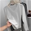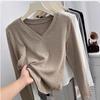 Pulover scurt moale și pufos, cu blană periată de toamnă și iarnă, cu temperament simplu, cu decolteu în V, cu mâneci lungi, cămașă slim și slăbită pentru femei