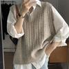 YYFS Moda damă ocazional toamnă iarnă imprimeu culoare uni pulovere fără mâneci cu decolteu în V