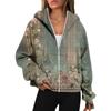 Hanorace de damă cu mânecă lungă, ocazional, cu fermoar complet, hanorace cu orificiu pentru degetul mare, haine, jachete cu buzunare