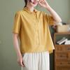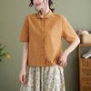Summer Loose Solid Color Single Breasted Retro Short Sleeved Shirt Women's Top