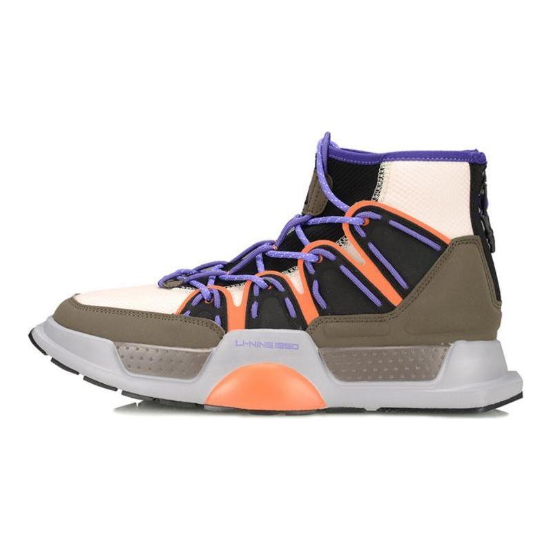 Li Ning Wu Dao Synthetic Leather Fabric Shock Absorbing Lightweight Wear Resistant Non Slip High Top Retro Basketball Shoes Men sneaker AGBP089-2