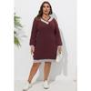 Rochie de pulover de toamnă și iarnă pentru femei, țesute cu decolteu în V, culoarea coliziunii, îmbinată la șold