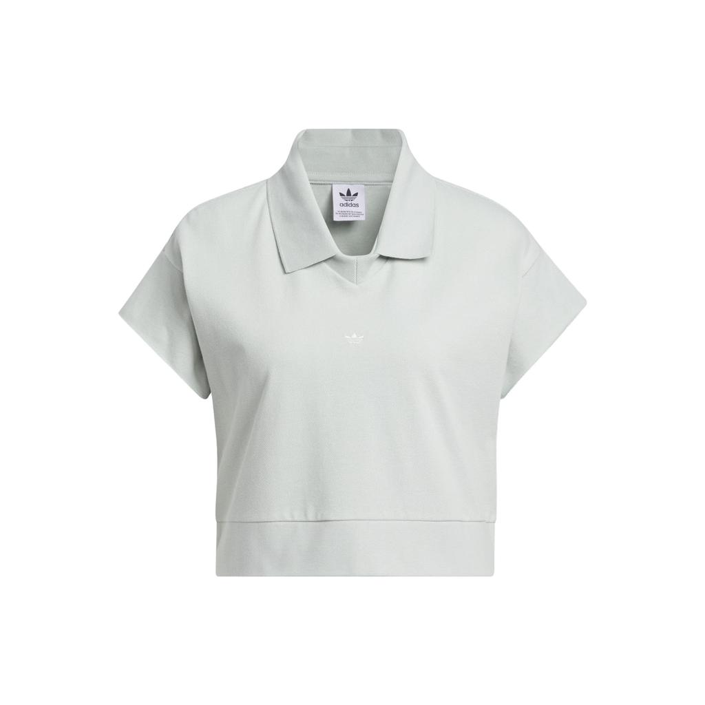 Adidas Originals Three Stripes Polo Shirt Solid Color Logo Sports Short Sleeve Polo Women tops Silver-Gray IJ5225