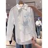 FILA Plant Print Fashion Casual Loose Woven Polo Long Sleeve Shirt Women shirts White F11W328401FWT