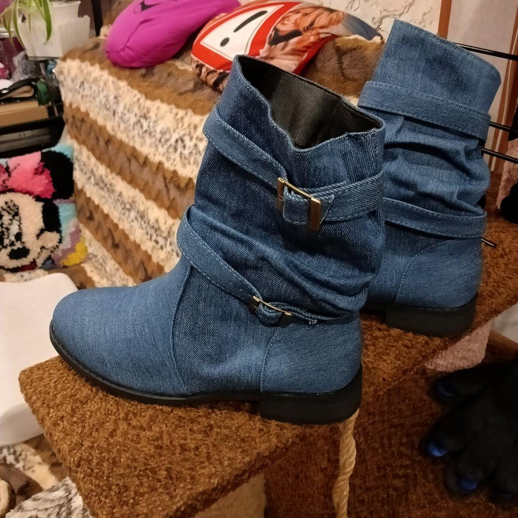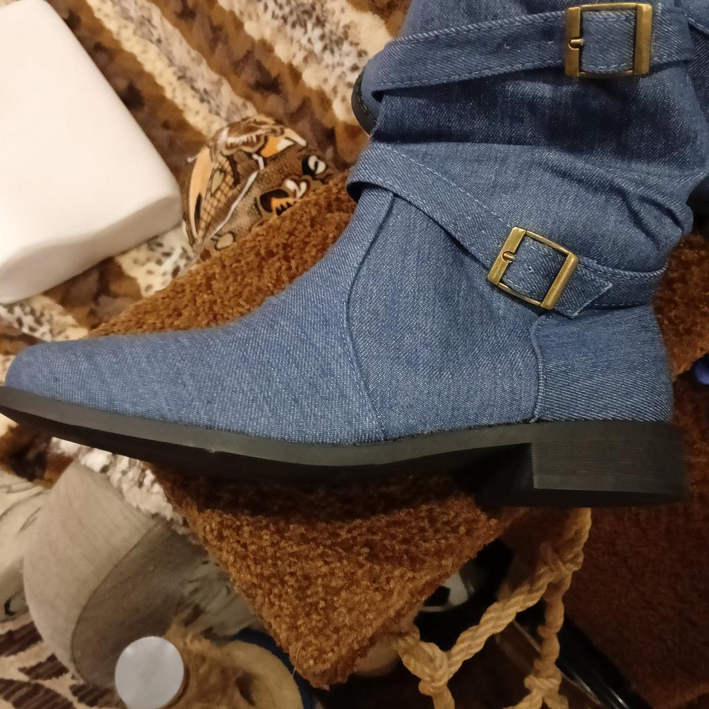 Cizme de dama catarama moda toamna iarna moda noua denim albastru toc patrat Cizme moderne mari marime mare 43 pantofi de dama